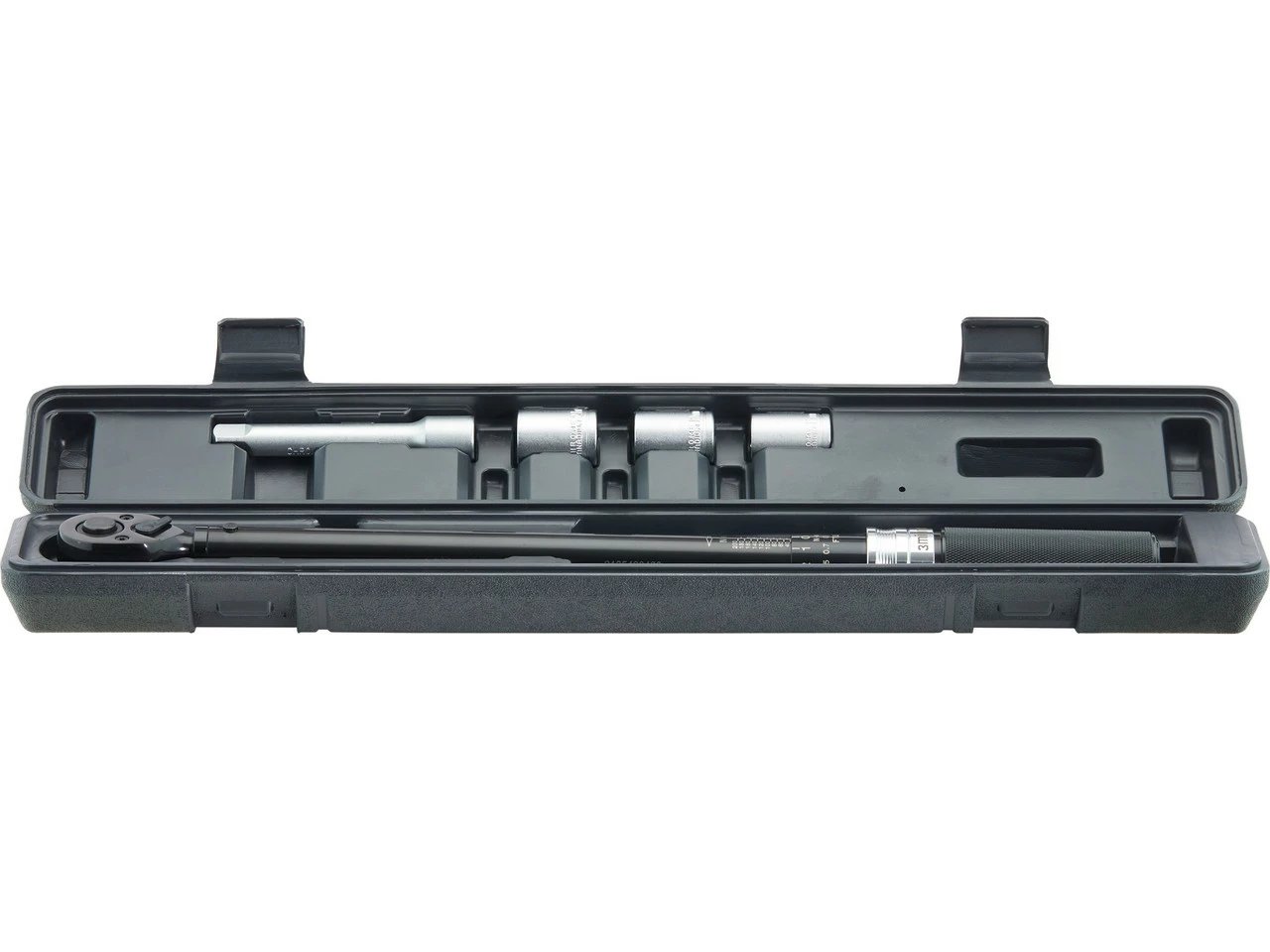 1 x Llave de torsión 3min19sec Premium 40 – 200 Nm1 x Extensión de 125 mm para 1/2″1 x Nuez de 17 mm1 x Nuez de 19 mm1 x Nuez de 21 mm1 x Estuche de almacenamiento