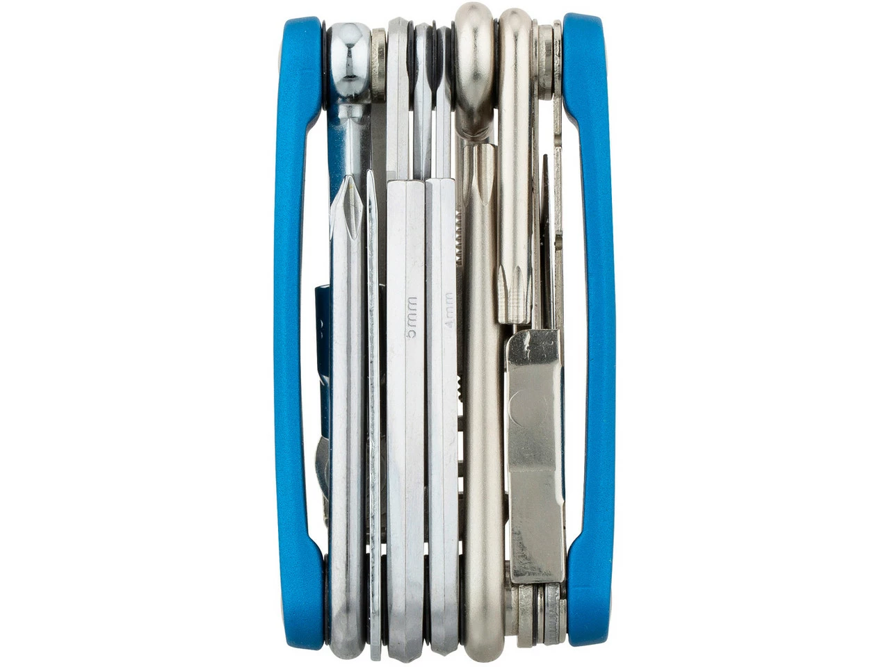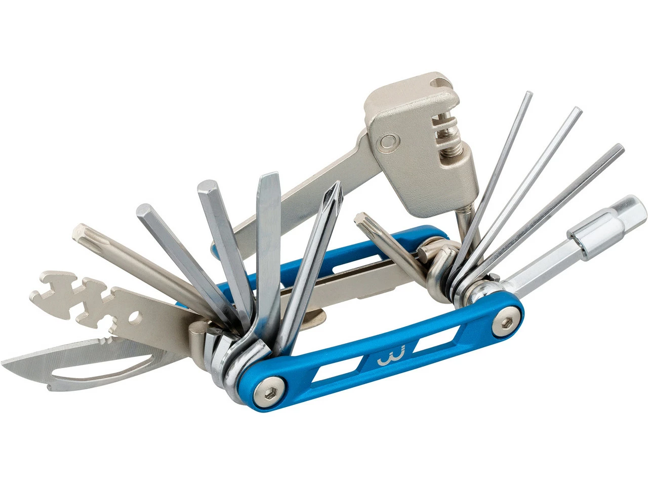 Datos técnicos:Material cuerpo:AluminioFunciones:18Funciones:Destornillador planoDestornillador de estrellaLlave hexagonal: 2, 2,5, 3, 4, 5, 6 y 8 mmTorx: T25, T30Separador de pastillas de frenoLlave de radiosTronchacadenasCuchilloNúmero de fabricante:2977454804