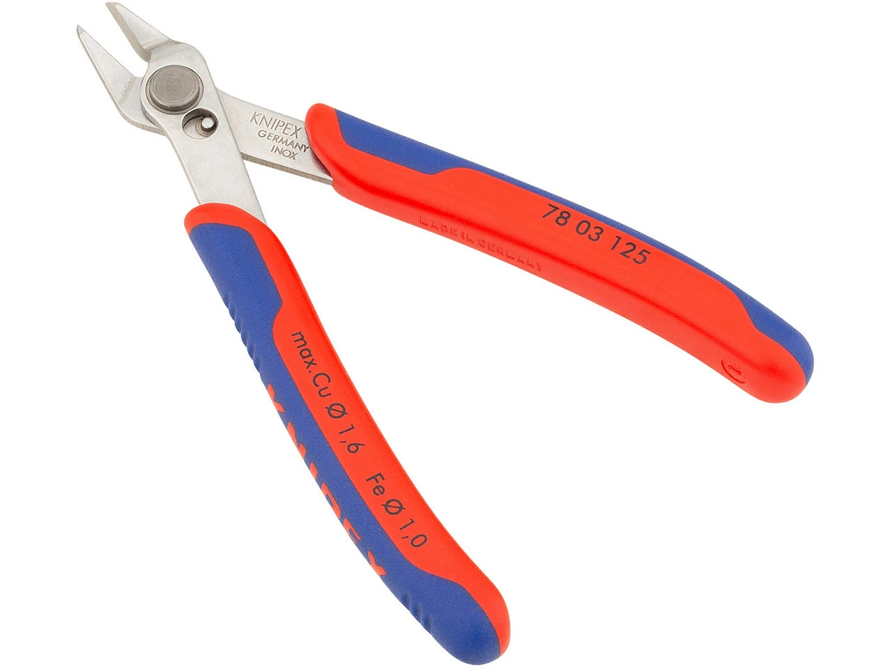 Datos técnicos:Campo de aplicación:ElectrónicaMaterial:INOX – acero inoxidableValor de corte del alambre blando:Ø 0,2 hasta 1,6 mmValor de corte del alambre de dureza media:Ø 1,0 mmForma:0 (=Standard)Longitud:125 mmCabezal:pulidoPuños:con fundas de varios componentesOtros:Corte sin facetaCaracterísticas:aristas lijadas cortantes muy afiladas sin facetas para el corte a raslas puntas de forma precisa también cortan los alambres adyacentes desde Ø 0,2 mmarticulación con remache de acero inoxidablecantos de corte endurecidos adicionalmente por inducciónmarcha extremadamente ligera para trabajar con menor esfuerzocon muelle y limitador de aperturadureza del filo de corte aprox. 54 HRCDIN ISO 9654Número de fabricante:78 03 125