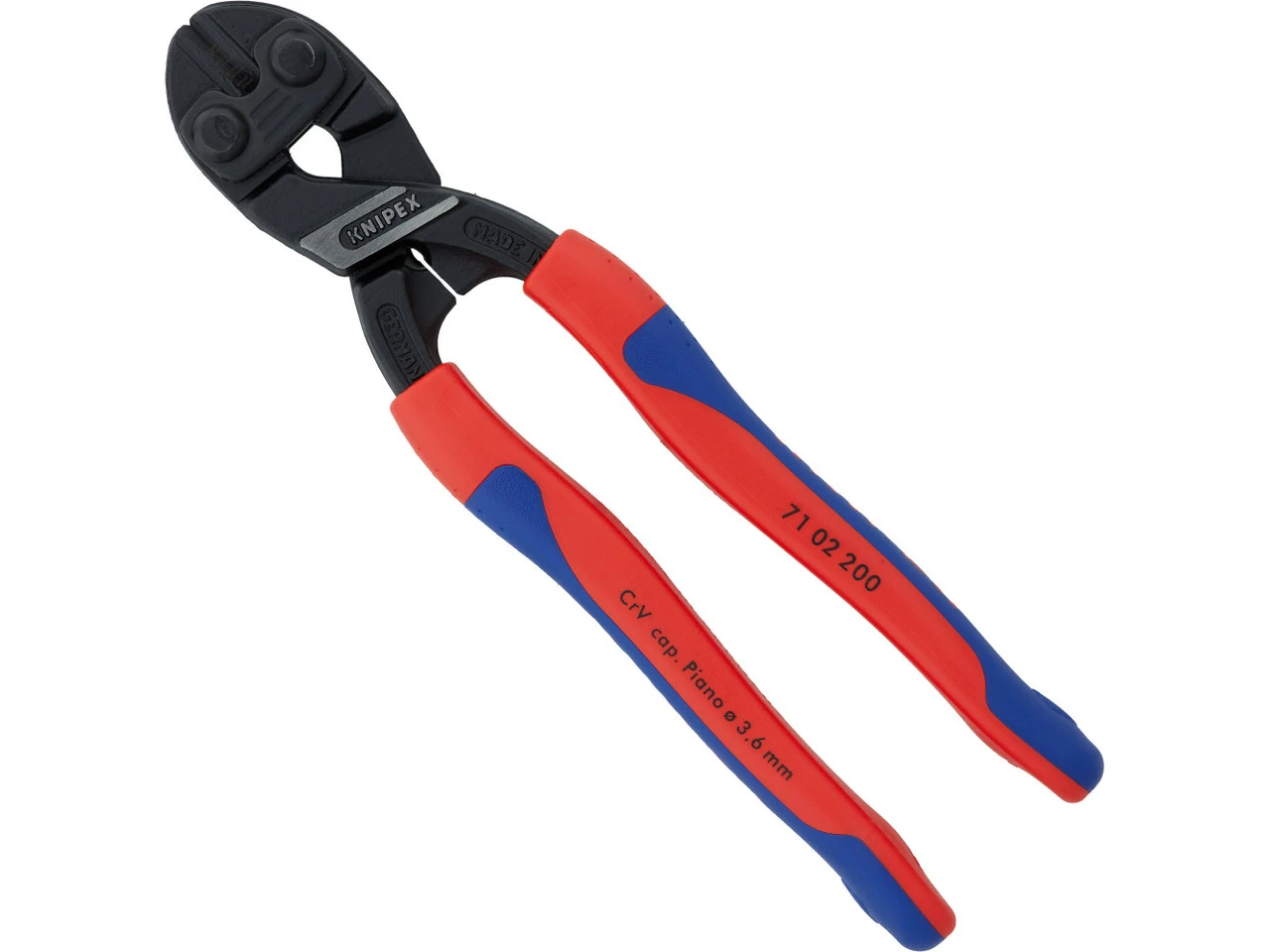 Medidas:200 x 62 x 21 mmValor de corte del alambres blandos:Ø 6,0 mmValores de corte de alambre de dureza de cables media:Ø 5,2 mmValores de corte de alambre duro:Ø 4,0 mmValores de corte de alambre de piano:Ø 3,6 mmNúmero de fabricante:71 02 200Volumen de envío:1 x Cortapernos Knipex CoBolt