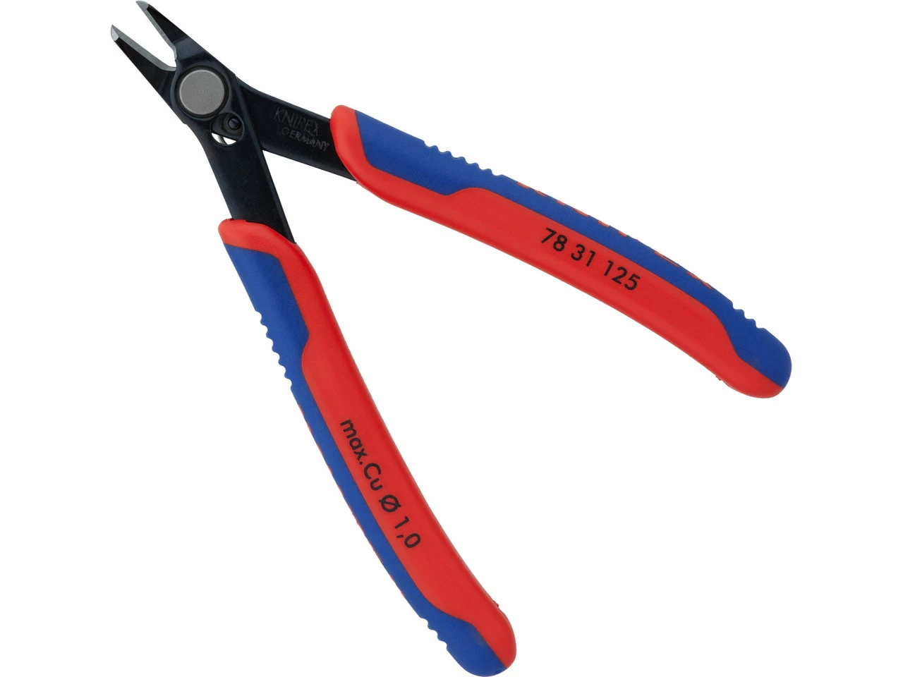 Medidas:125 x 60 x 13 mmValor de corte del alambres blandos:Ø 0,2 – 1,0 mmNúmero de fabricante:78 31 125Volumen de envío:1 x Alicates Knipex Electronic Super Knips