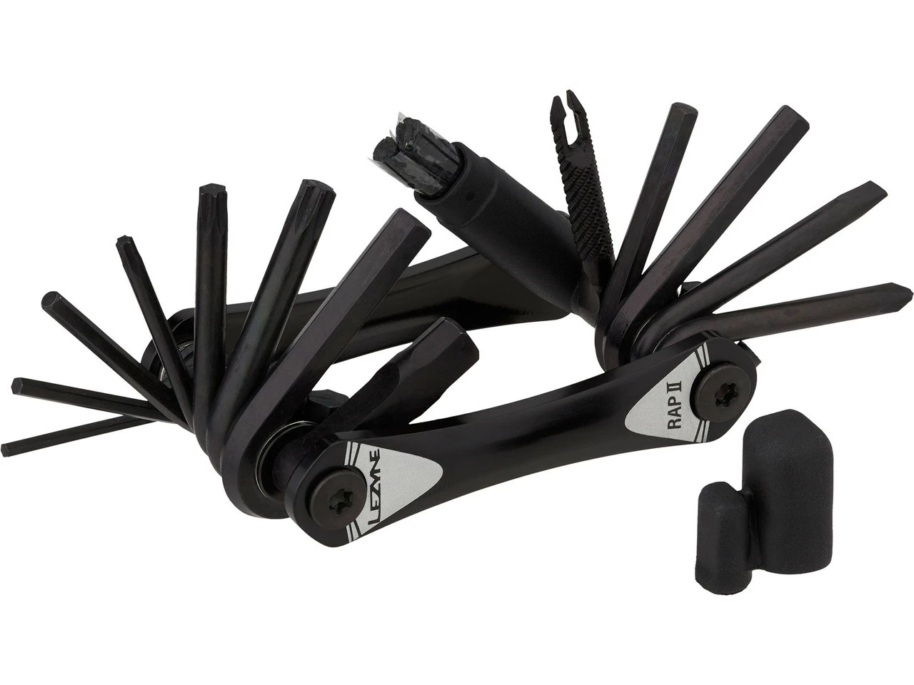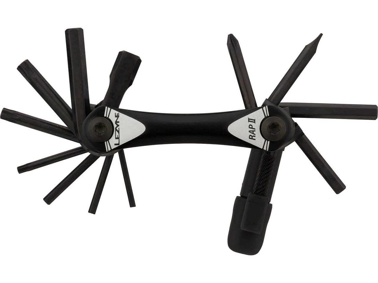La herramienta multiusos RAP II 13 de Lezyne incluye 12 herramientas y un juego para parchear cubiertas Tubeless. Las puntas de acero son duraderas y estables.