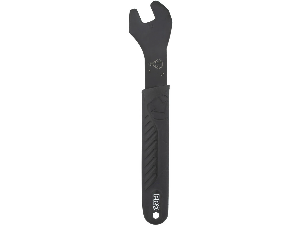 La llave de pedales PRO para ejes de 15 mm está fabricada de acero endurecido robusto. La forma angular hace que la llave sea aún más fácil y sobre todo más segura de manejar, ya que la mano está más alejada del brazo de la biela.