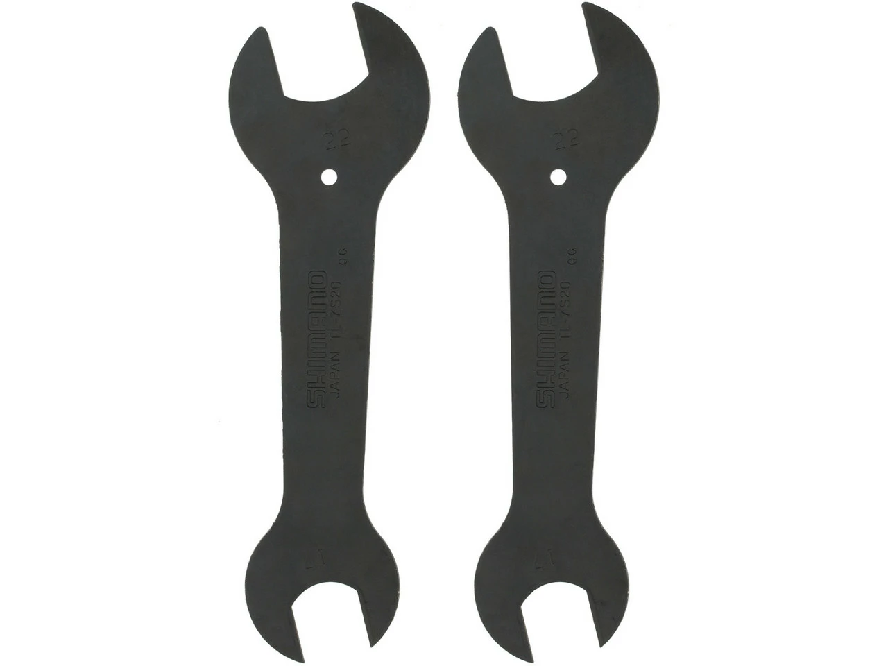 Las llaves de cono TL-7S20 de Shimano se utilizan para el montaje, desmontaje y ajuste de los rodamientos de cono en los bujes de Shimano. Son dos llaves de boca con una apertura de 17 y 22 mm. Están hechos de acero endurecido y por lo tanto son particularmente robustos.