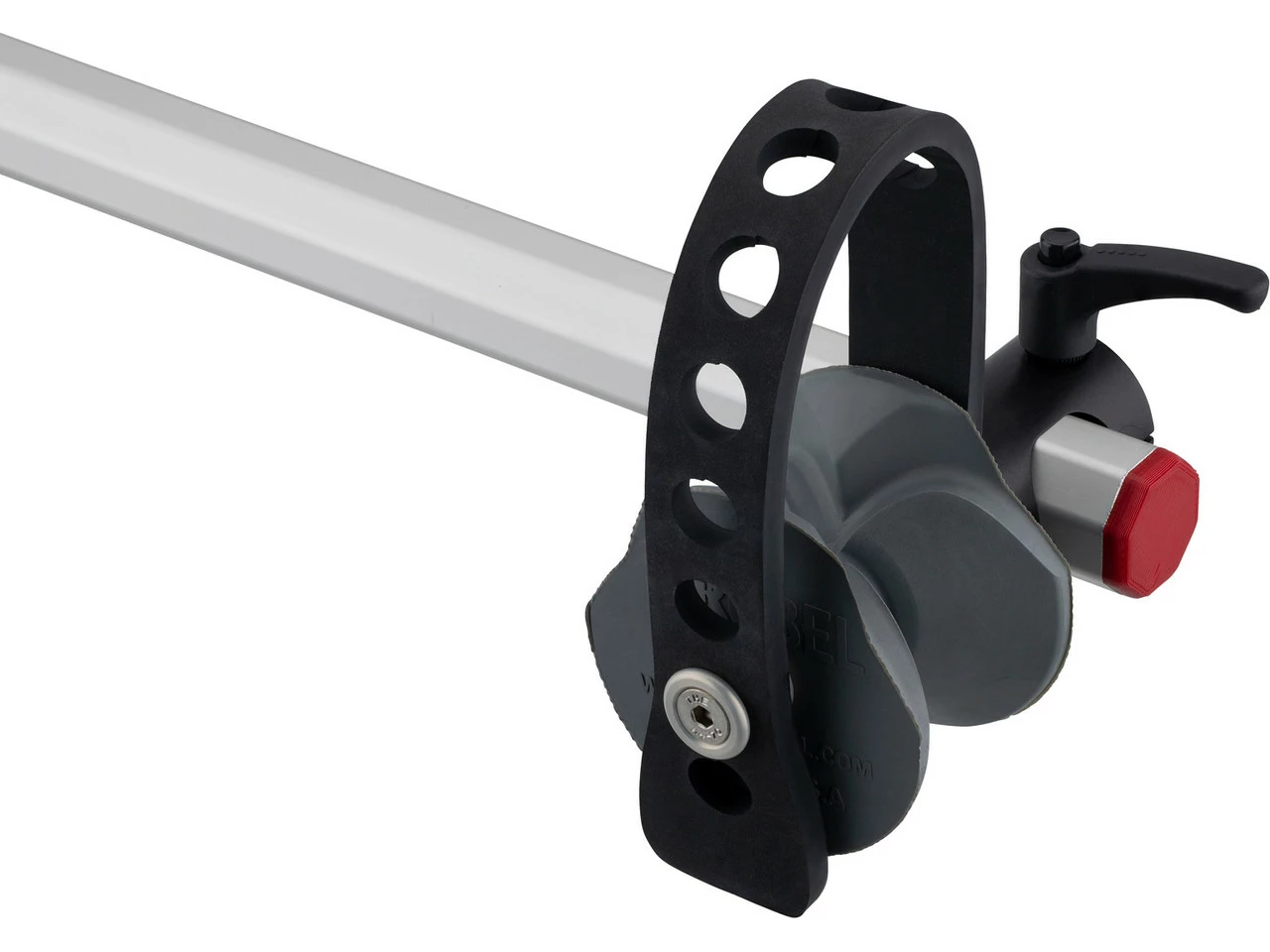 La abrazadera del cuadro Hirobel de SILCA para los soportes de montaje se sujeta en el triángulo del cuadro y distribuye la carga uniformemente sobre el cuadro sujetado. Esto es conveniente para bicis de carbono, ya que con ella se evitan los picos de presión. Esto protege la bicicleta y mejora la estabilidad, al trabajar con bicicletas más pesadas de lo usual, por ejemplo.