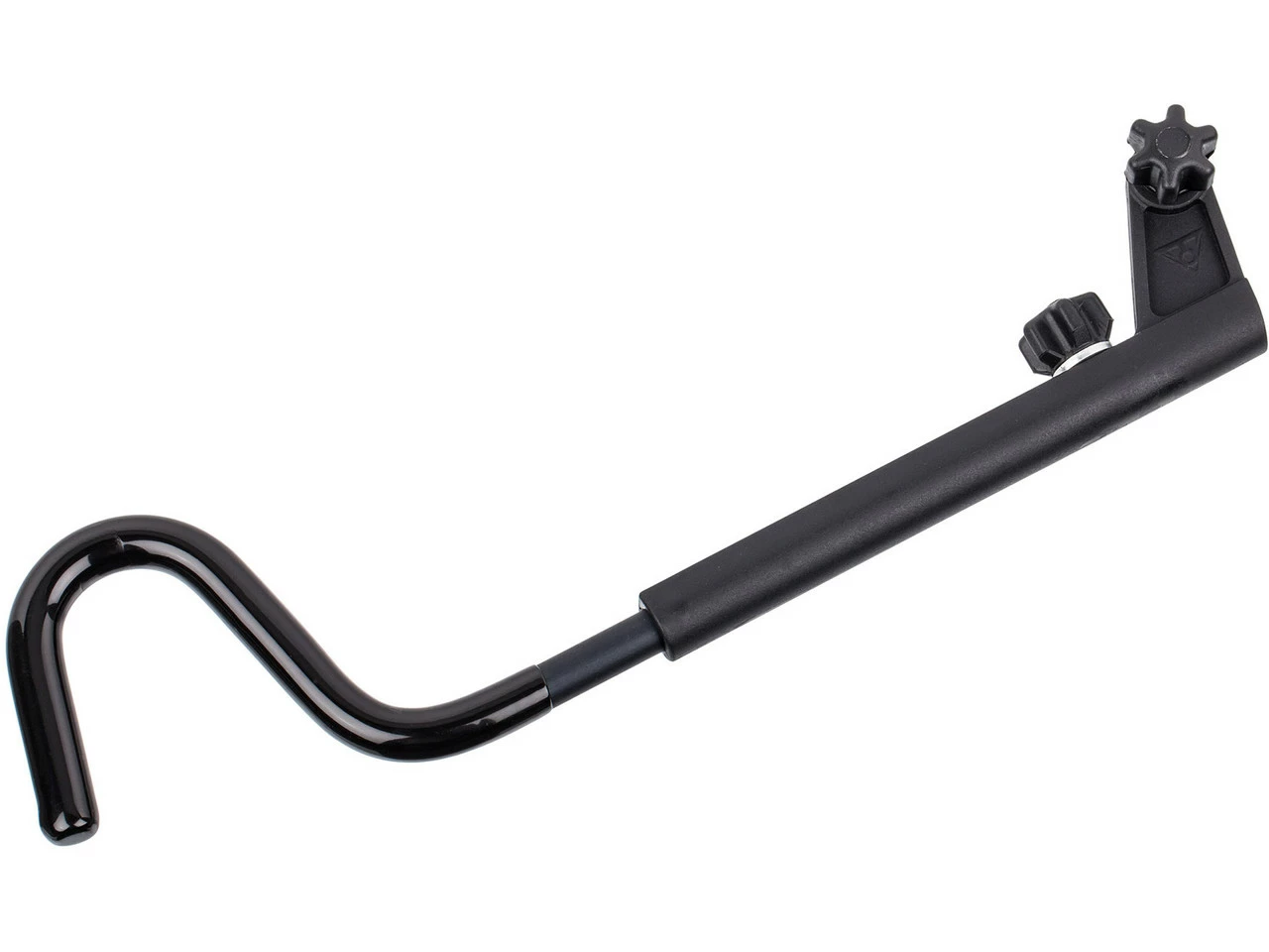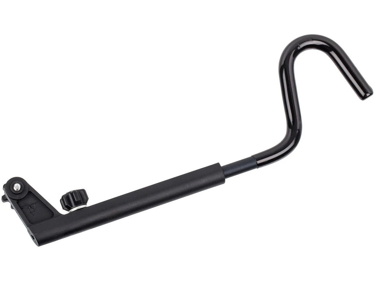 El Handlebar Stabilizer fija el manillar. El ángulo y la longitud del gancho pueden ajustarse para adaptarse a cualquier manillar.