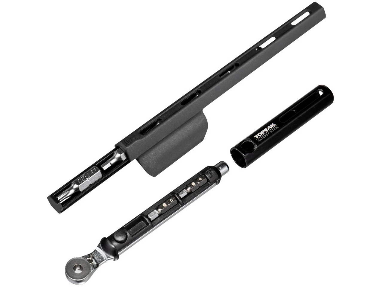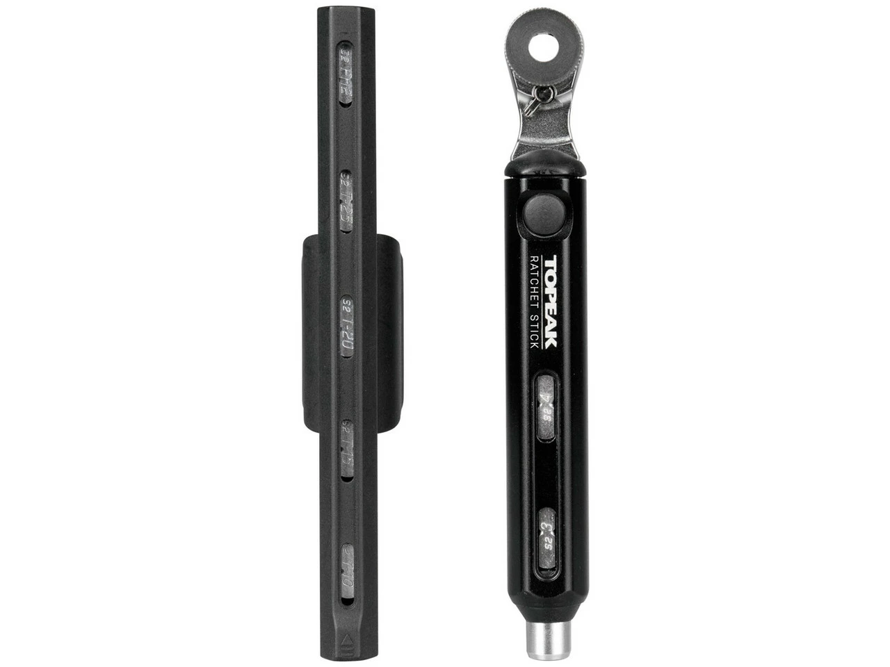 El Topeak Ratchet Stick es una carraca portátil compacta y reversible. Las 10 puntas de herramientas incluidas pueden guardarse convenientemente en el mango de la carraca y en el portapuntas extraíble, las ventanas de visualización permiten encontrar rápidamente la punta correcta.