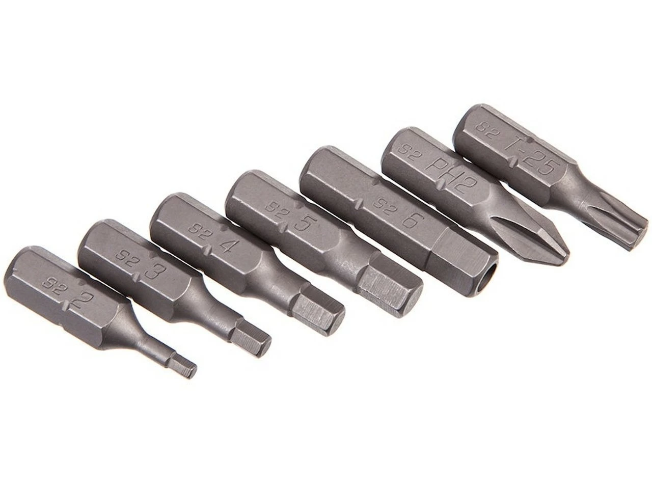 Volumen de envío:1 x Bits hexagonales 2 mm1 x Bits hexagonales 3 mm1 x Bits hexagonales 4 mm1 x Bits hexagonales 5 mm1 x Bits hexagonales 6 mm1 x Torxbit T251 x Bit de estrella #2 Phillips