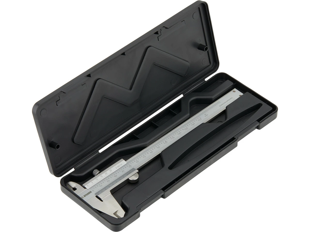 Especificaciones:Función:Herramienta de comprobaciónTipo de herramienta:CalibradorModelo:ajustableTamaño:0 – 150 mmDatos técnicos:Material:AceroCaracterísticas:repetibilidad 0,02 mm/0,0001″para mediciones exteriores, interiores, escaladas y de profundidaddoble escala en pulgadas y milímetroslongitud total 235 mmNúmero de fabricante:612035