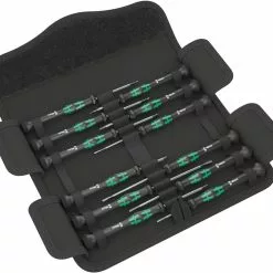 Volumen de envío:2 x Destornillador de estrella Wera Elektroniker 2050 PH Micro para tornillos Phillips-Recess ( 00/0 x 60 )2 x Destornillador Wera Elektroniker 2067 TORX® HF para tornillos TORX®( TX5 / TX6 x 40 )5 x Destornillador plano Wera Elektroniker 2035 Micro para tornillos Phillips-Recess ( 0,23 x 1,5 x 40 / 0,30 x 1,8 x 60 / 0,40 x 2,0 x 60 / 0,40 x2,5 x 80 / 0,50 x 3,0 x 80)3 x Destornilladores hexagonales Wera Elektroniker 2054 Micro para tornillos hexagonales (0,9 x 40 / 1,5 x 60 / 2 x 60 )