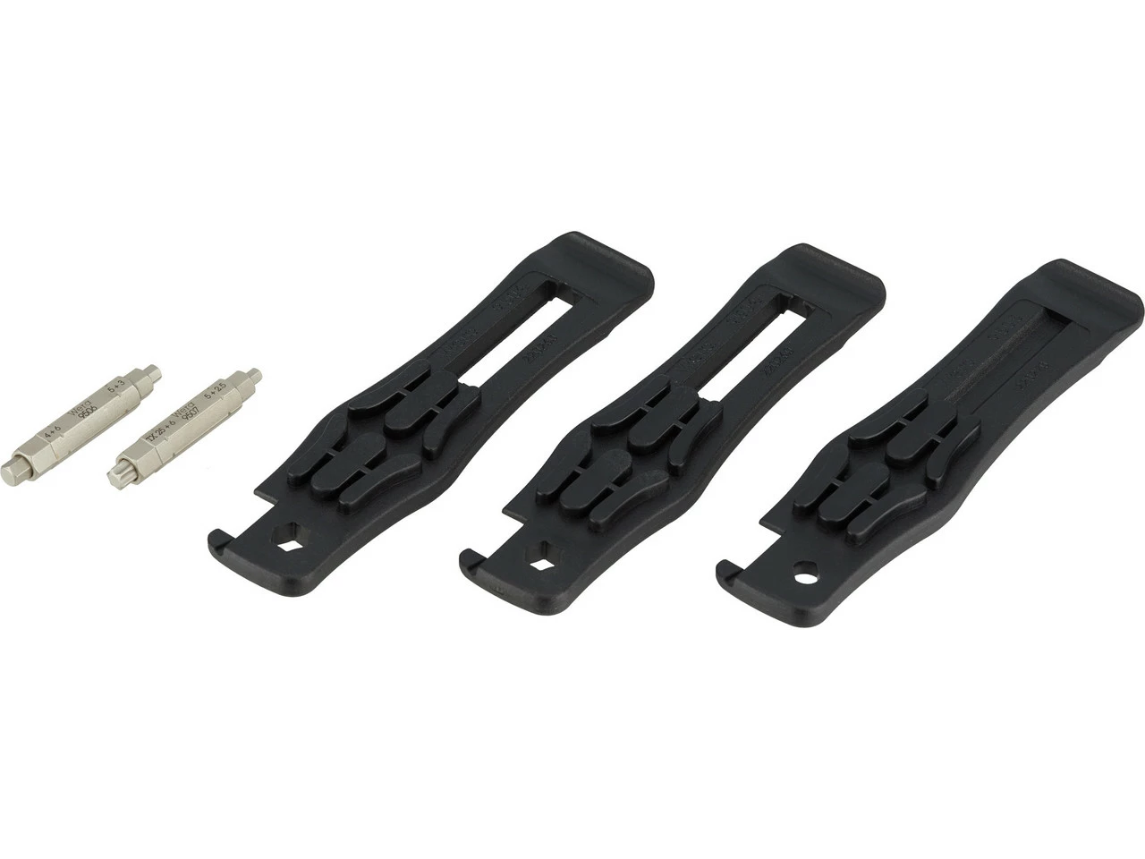 El set Bycicle 15 de Wera consta de tres desmontadores de cubiertas de plástico reforzado con fibra de vidrio y dos bits combinados. Uno de los desmontadores de cubiertas se puede utilizar como herramienta para válvulas, y los otros dos tienen una fijación de puntas de 1/4″ , por lo que pueden convertirse en una herramienta de atornillado. Los bits 4 en 1 combinan cuatro tamaños de llaves de vaso hexagonales o tres tamaños de llaves de vaso hexagonales y una Torx T25.